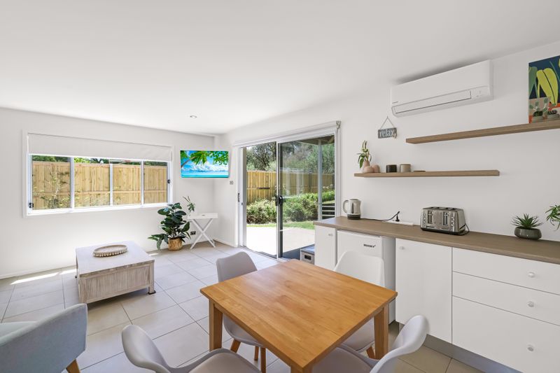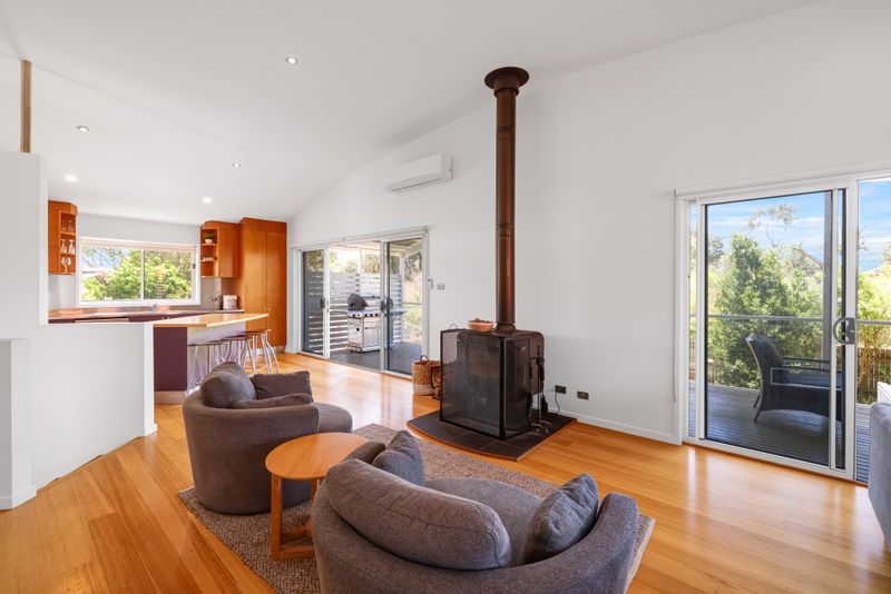 The rear garden blends beautifully with the surrounding greenery, offering privacy and tranquillity. Through the back gate, a short stroll brings you directly onto one of Australia's most picturesque stretches of coastline-patrolled in summer and renowned for its natural beauty. Tilbury Cove is only 900 metres away, offering a sheltered swimming area, playground, and picnic facilities. Local cafes, boutique shops, takeaway options, and Woolworths are just a three-minute drive from home.