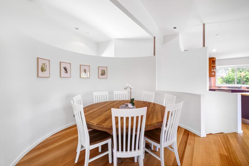 Upon entering the generous foyer, the home's craftsmanship becomes immediately apparent. Lofty ceilings, an impressive curved timber staircase, and an abundance of natural light create a memorable sense of arrival. The foyer also includes space for a study nook and convenient under-stair storage, setting the tone for the thoughtful design that continues throughout the home.