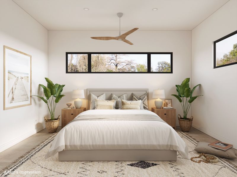 Each residence offers four generous bedrooms, three well-appointed bathrooms, and a single lock-up garage with a built-in storage cupboard. A conveniently located guest bedroom on the ground floor features a walk-in robe and direct access to the dual-access bathroom, making it ideal for visitors, extended family, or multigenerational living.