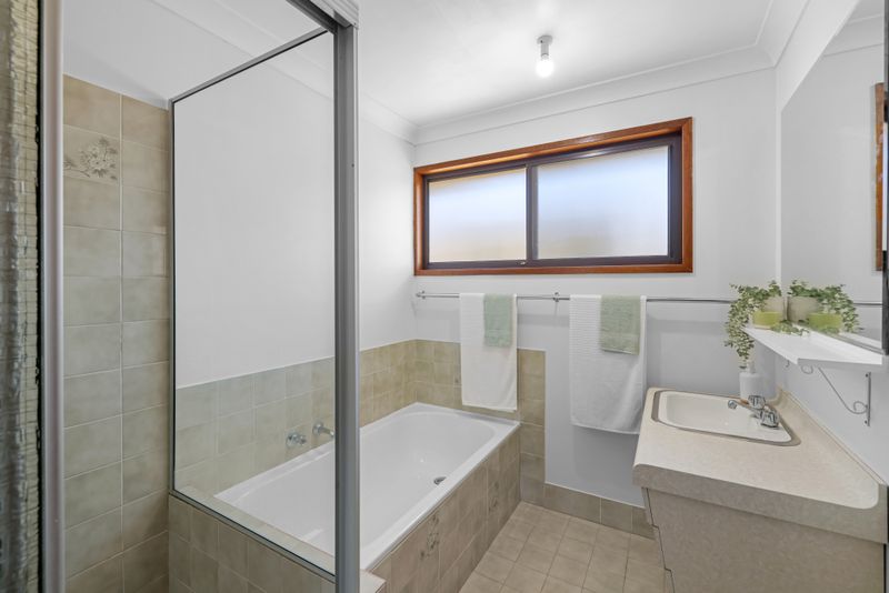 Two of the bedrooms have built-in robes, serviced by a bathroom with separate shower. The open-plan living and dining area creates a welcoming space for everyday living and entertaining, while the functional kitchen is perfectly positioned.