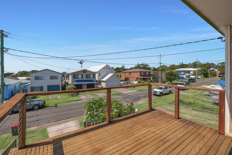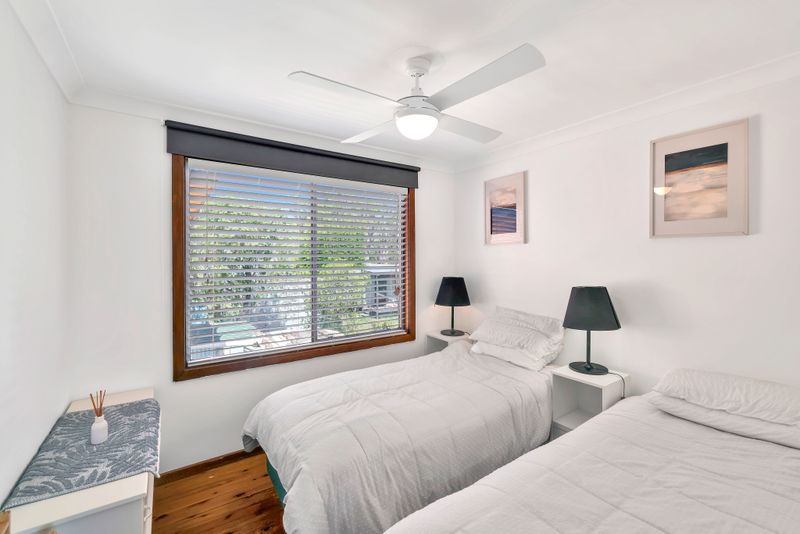 Upstairs is the heart of the home, where an open-plan kitchen, living and dining area captures light and coastal breezes. This space flows seamlessly onto a generous upstairs deck-perfect for entertaining family and friends. Comfort is assured year-round with split system air conditioning and 2 ceiling fans in this upstairs living space, as well as ceiling fans throughout the home. The upper level also features two bedrooms, including the main bedroom with built-in robe, along with a well-appointed main bathroom offering a separate bath and shower.