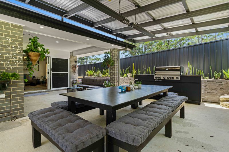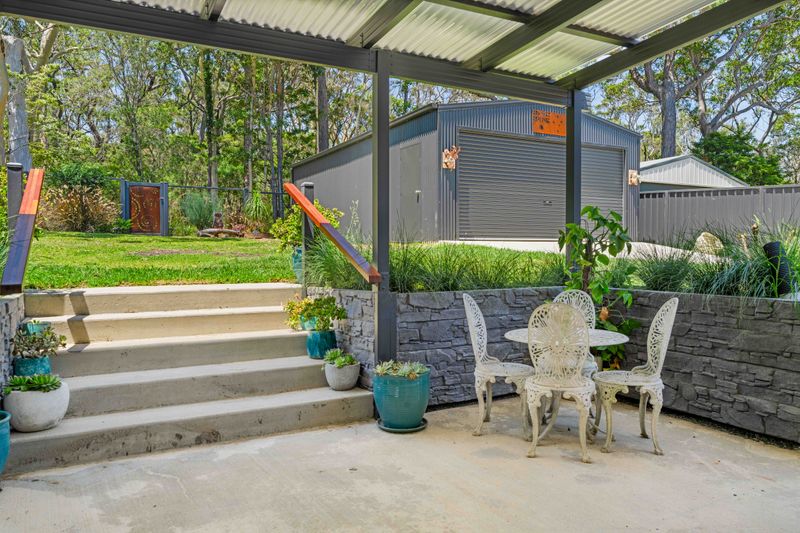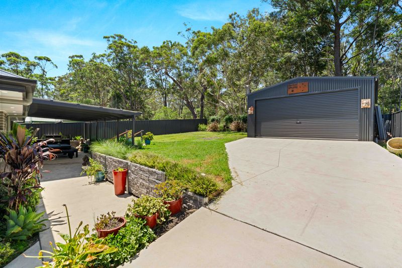 Versatility is key here dual garage with a large concrete driveway, side access into another garage. Manicured gardens, vast alfresco with BBQ. Approximately 2 minutes to the local boat ramp. Approx 5 mins to the Vincentia (HomeCo) along with access straight on to Jervis Bay Road to head into Nowra (hospital, bunnings, Stockland's center) just to name a few.