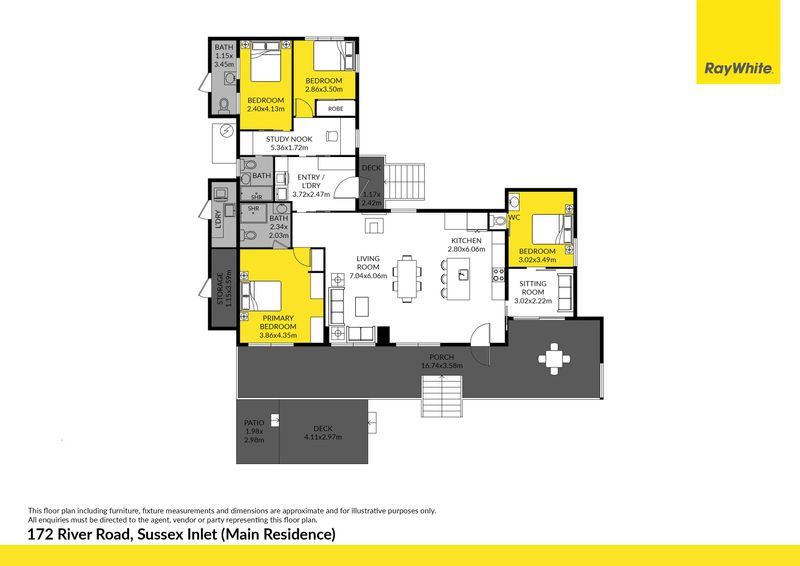 Situated amongst the natural beauty of Sussex Inlet township, this expansive residential complex is a rare offering. The compound offers a 4 bed primary residence with 3 separate self-contained cottages all situated on an expansive 1960m2 (approx.) block. Ideal as a private holiday residence or investment/ business opportunity.